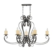 World Imports 5929-97 look that is not too heavy, yet styled for Old World charm 10' chain and 12' wire included Hand-blown glass candles illuminate with an ambient soft glow Hand-Wrought Iron Straps are Doubled to Create an Inviting Look Requires 7 60-watt B-10 Candelabra Bulbs ...